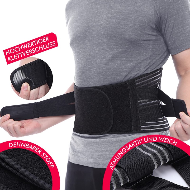 - Fully adjustable: the back support has 2 elastic straps that allow you to adjust the pressure on your lower back according to your needs. The extra wide Velcro straps prevent the back support from slipping while wearing. Not only will you get a strong back support, but you will also feel very comfortable when wearing this product.