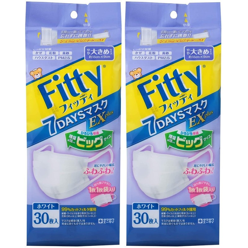 Fitty 7 Days Mask, EX Plus, Slightly Large, Pack of 30, White, Individually Packaged, Wide, Fluffy Rubber (Set of 2)