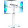 FITUEYES Universal Floor TV Stand Swivel Mount Height Adjustable for 27 32 55 65 70 inch Flat and Curved Screen TVs, Tempered Glass Base Black TV Stands with Cable Management Modern