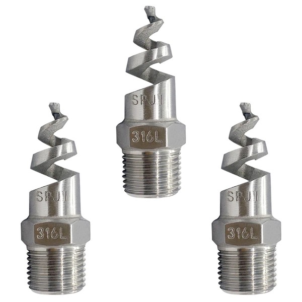 Fitvell 3/4" Male Spiral Cone Atomization Nozzle 316 Stainless Steel Dust Remove Atomized Sprayer for Gas Cooling, Fire Proof, Washing 3PCS