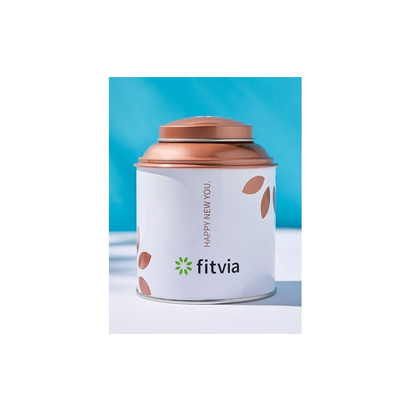 Preserve the fresh, aromatic taste of your Fitvia tea with the high-quality fitvia storage tin. This stylish tin can hold up to 100 grams of tea, depending on the variety, and optimally protects your tea from moisture, light and other harmful influences thanks to its airtight seal. This preserves the full aroma of your tea and it stays fresh for a long time.