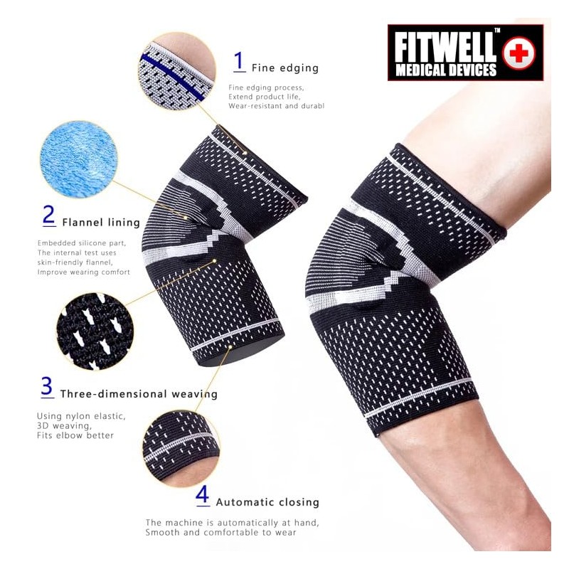 FITWELL Medical Devices Elbow Compression Brace Support Sleeve, Medical-Grade Relief for Tennis Elbow, Tendonitis, Golf Elbow, Reduce and Heal Elbow Joint Pain and Inflammation