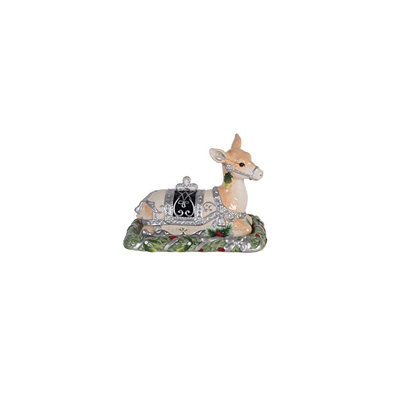 Fitz and Floyd Bristol Holiday Deer Covered Butter Dish, One Size, Blue/White