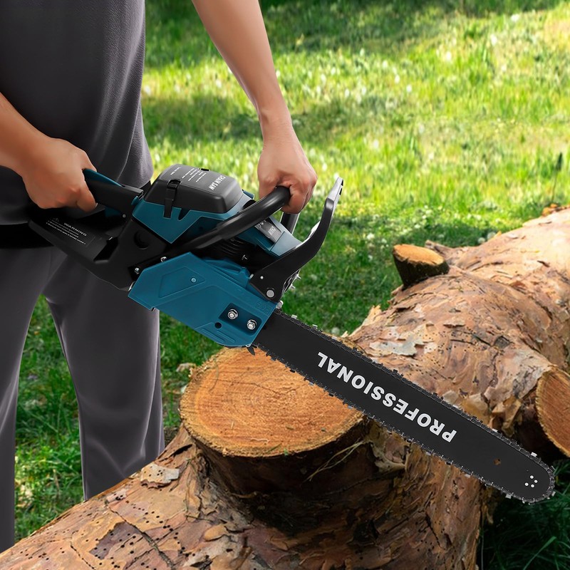- POWERHOUSE PERFORMANCE: Crush tough jobs with this 58CC gasoline chainsaw – 3.1HP monster engine slices through 20-inch logs like butter! No more struggling with wimpy tools.