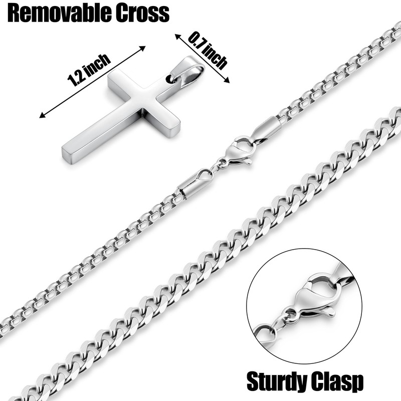 - Size: 3mm width 22" length box chain with 1.2*0.7" cross pendant necklace and 5mm width 20" length cuban chain. 2Pcs Layered necklace set are separate so you can wear them together or alone to show off your own style