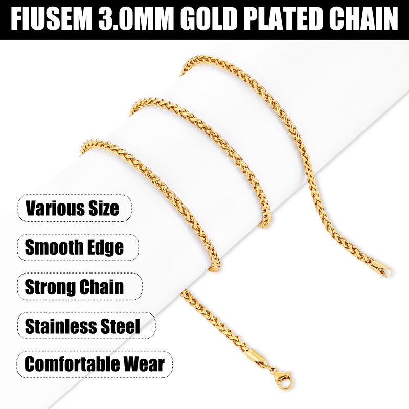 Fiusem Gold Plated Wheat Chain Necklace for Men, 3mm Gold Stainless Steel Necklace Chains for Men and Women 26 Inch
