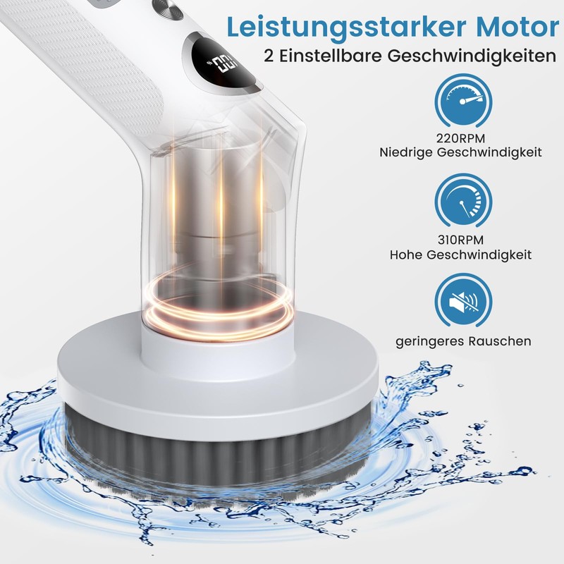 - Two cleaning modes: this electric cleaning brush has two strong cleaning modes: at the low speed of 220 rpm, it cleans gently, while at the high speed of 310 rpm it is aimed at stubborn dirt. Whether it is light dust or heavy oil dirt, it can react precisely to the respective situations and satisfy different cleaning needs.