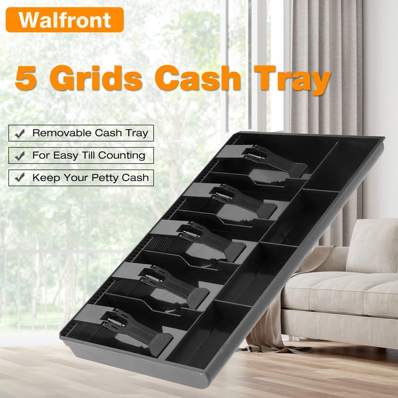 - MULTIPLE COMPARTMENT TRAYS: The cash drawer adopts 5 bills 4 coin design, made your cash in good organization.