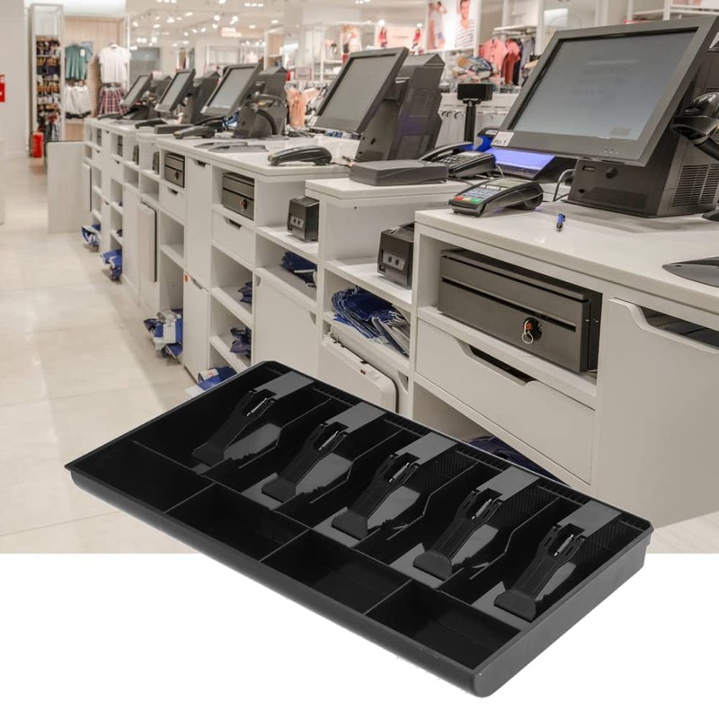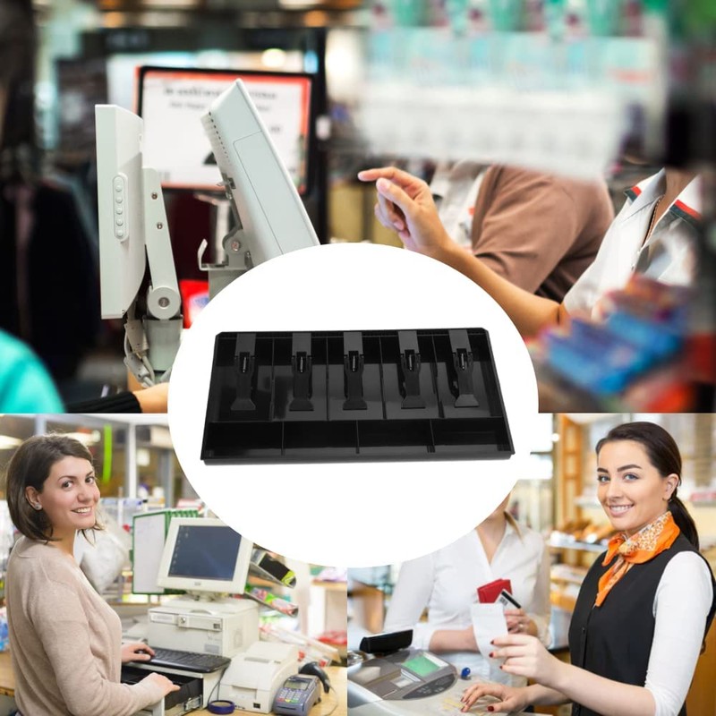 Five Grids Cash Drawer Register, 5 Bill 4 Coin Slots Insert Coin Tray Cashier Tidy Storage Safe Box(Black)