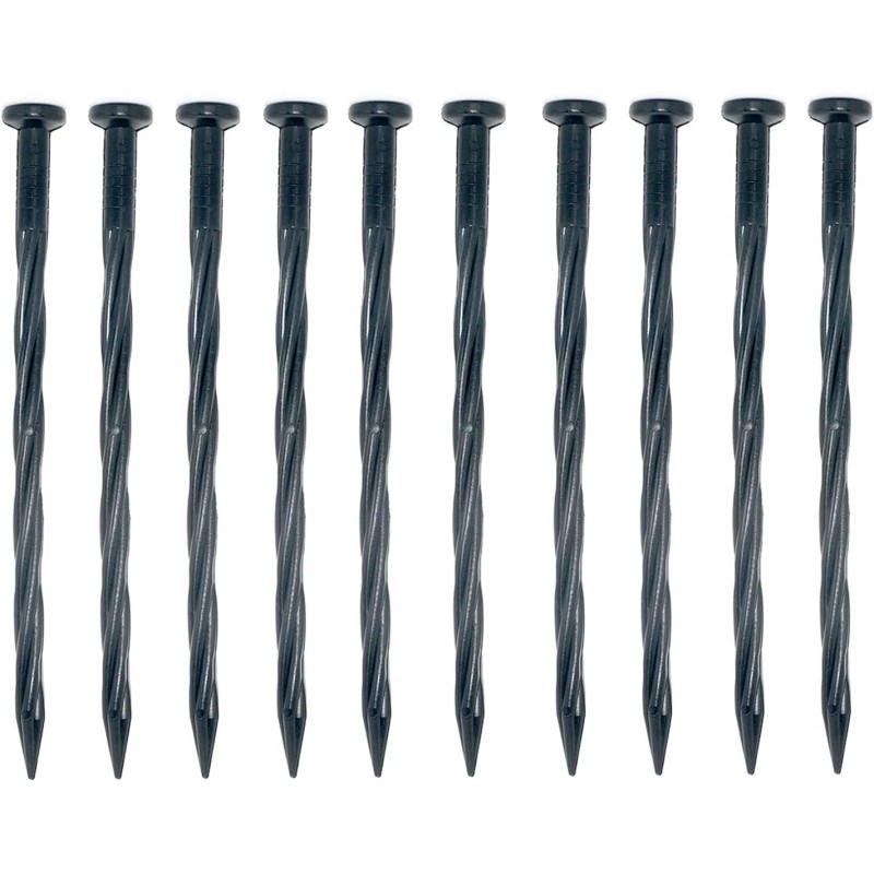 Plastic 8" Edging Nails, (25 Pack) Heavy Duty Anchoring Spikes for Plastic Edging, Fabric Weed Barriers, Spiral Design Landscaping Nails - Five Leaf Clover