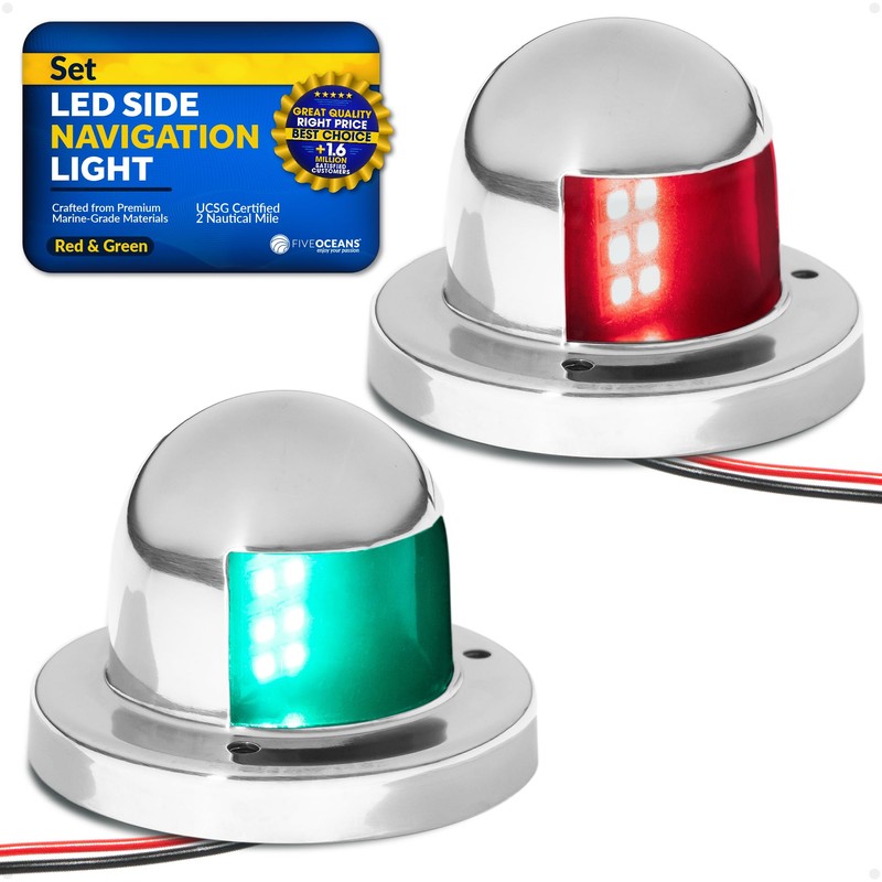 Five Oceans Boat Navigation Lights - LED Bow Light, Navigation Lights for Boats LED Red and Green, Boat Lights Navigation Horizontal Mount Sidelight, 12V, USCG Rules 2NM - FO4431-C1