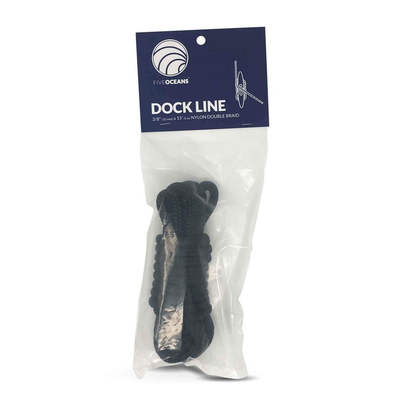• Five Oceans Dock Line made of 100% Premium Black Double Braided High-Grade Marine Nylon. Superior abrasion resistance. Professionally spliced soft Eye at one end.