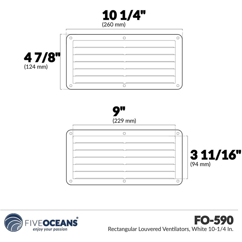 Five Oceans Rectangular Louvered Air Ventilators, 10 1/4" Black/White by Five Oceans Store