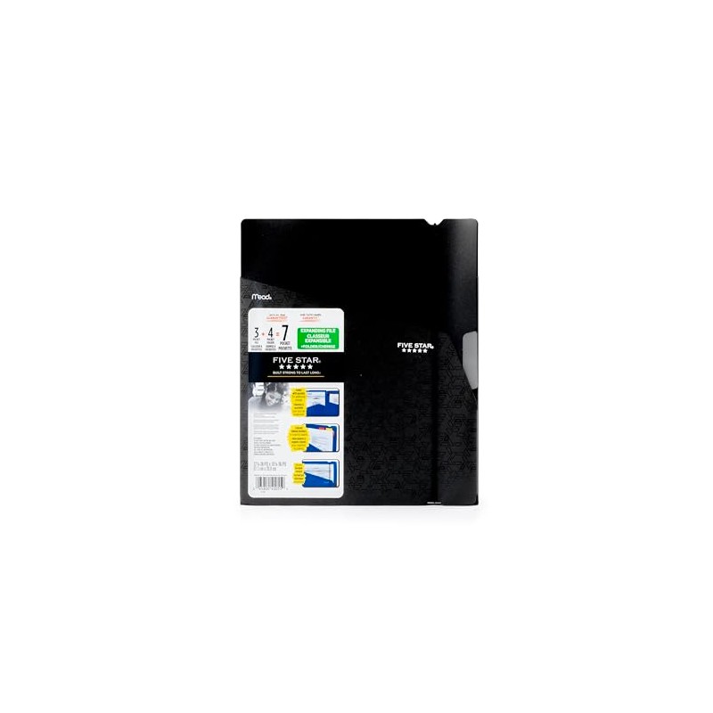 Five Star Expanding File + Folder, 7 Pockets, 10.25" x 12.25", Storage Pockets, Tabbed Dividers, Bungee Closure, Black (350168)