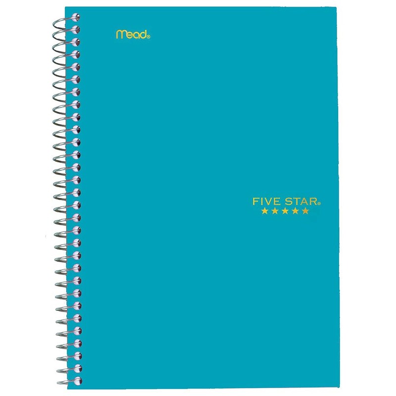 Five Star Small Spiral Notebook, 2-Subject, College Ruled Paper, 9-1/2" x 6", 100 Sheets, Teal Blue (06180AA4)