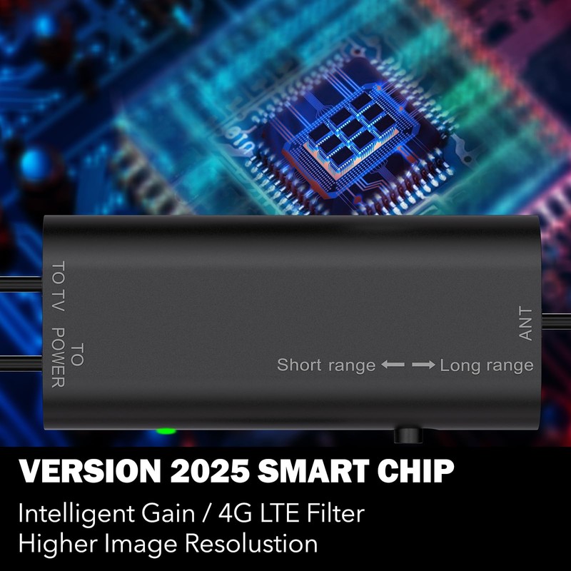 - Amplified Signal with 60-Mile Range – Equipped with a high-gain amplifier, this directional antenna ensures a stronger and clearer signal reception from broadcast towers up to 60 miles away, delivering stunning 4K and 1080p resolution for your favorite shows and movies.