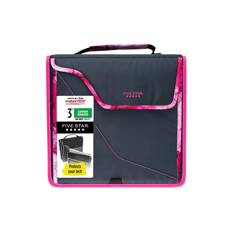 Five Star Zipper Binder, 3 Inch 3-Ring Binder with Removable Padded Case and Expanding File, 700 Sheet Capacity, Includes Multi-Use Strap, Navy/Pink (292960D)