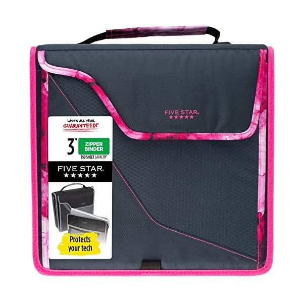 Five Star Zipper Binder, 3 Inch 3-Ring Binder with Removable Padded Case and Expanding File, 700 Sheet Capacity, Includes Multi-Use Strap, Navy/Pink (292960D)