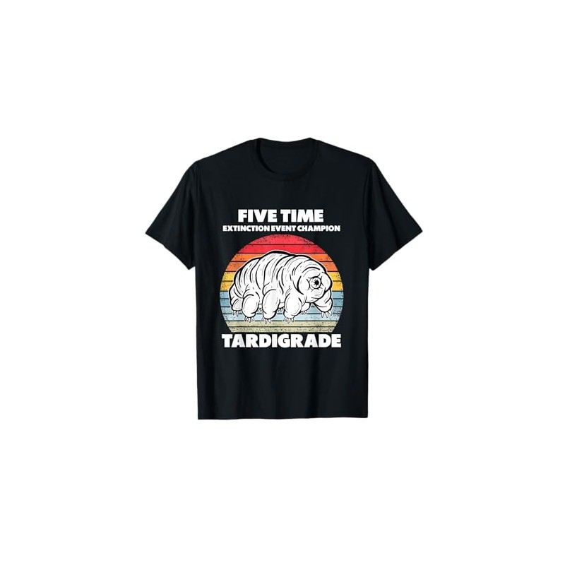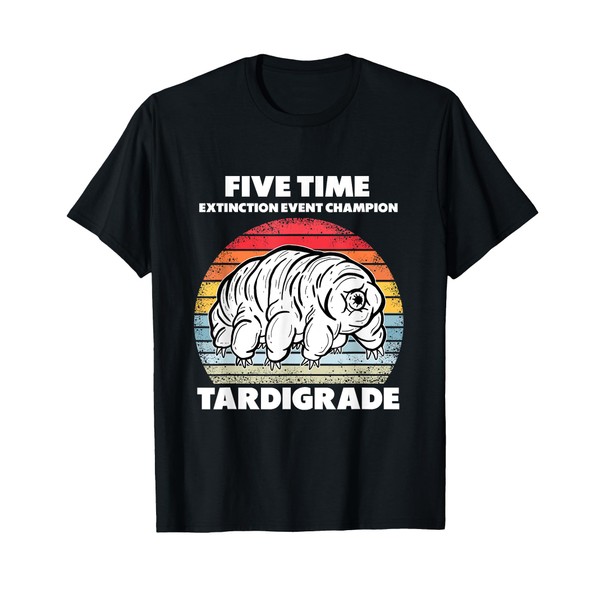 - Looking for a cool microbiology outfit? This retro retro tardigrade graphic with the quote "Five Time Extinction Event Champion Tardigrade" is just right for you or any bacterial researcher you know.