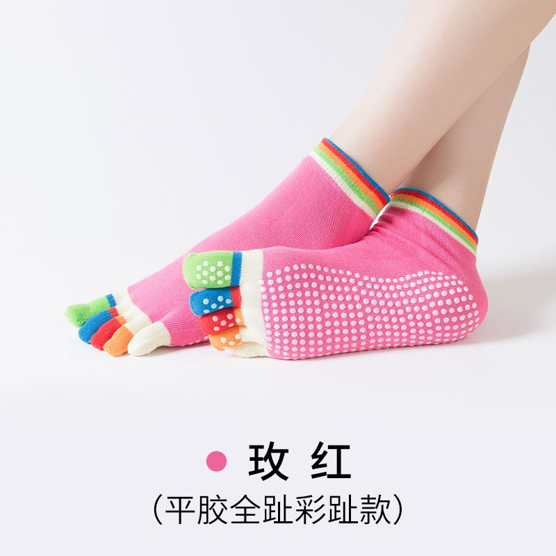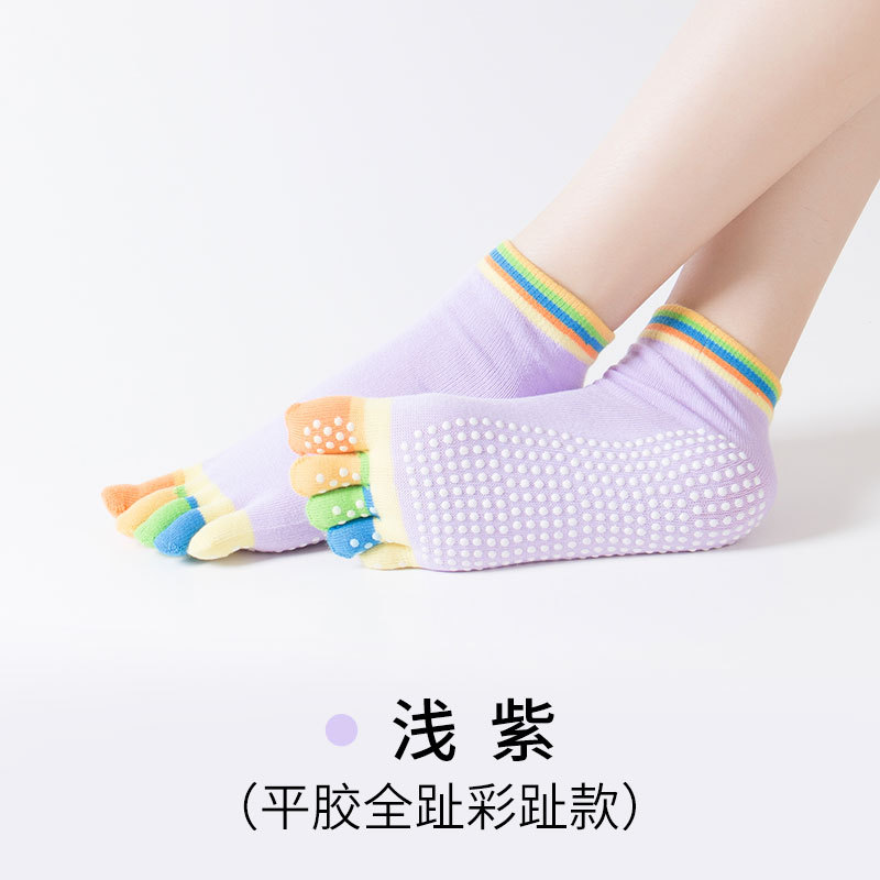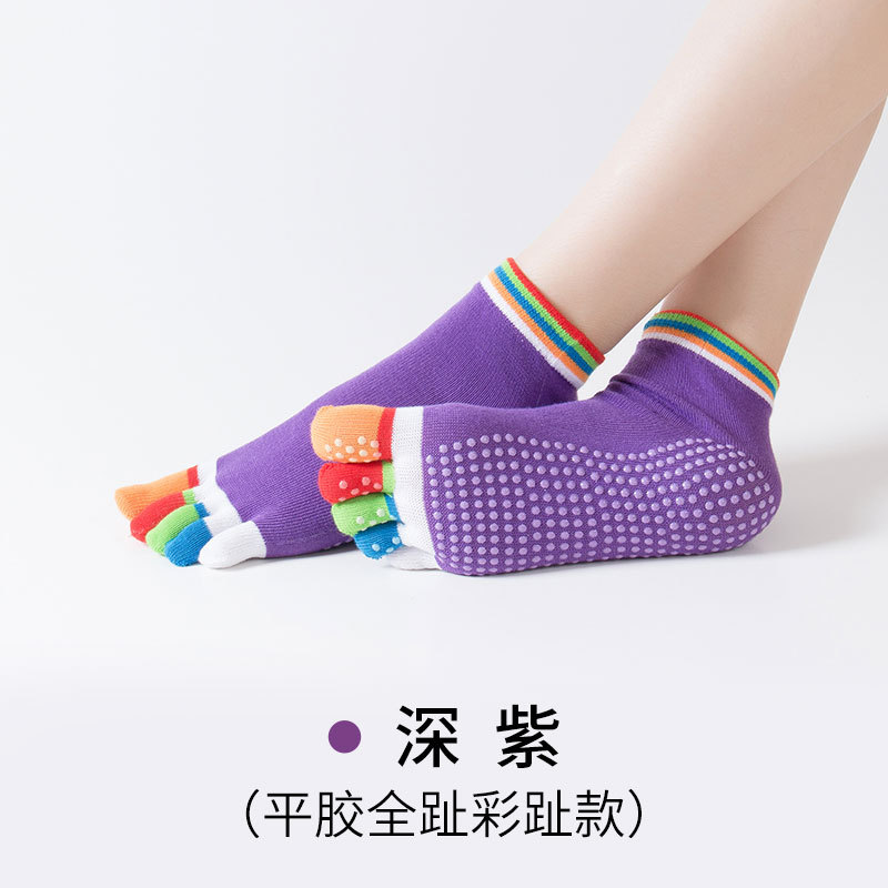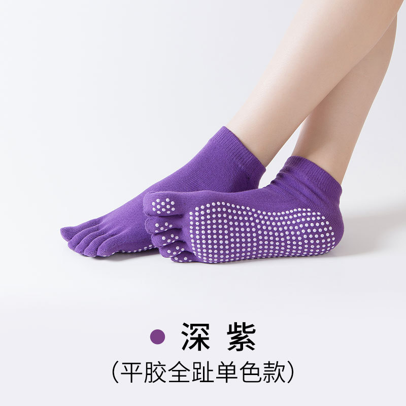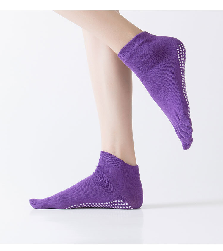 Five-Toe Yoga Grip Socks for Gym Size/Solid Dark Purple 20ea