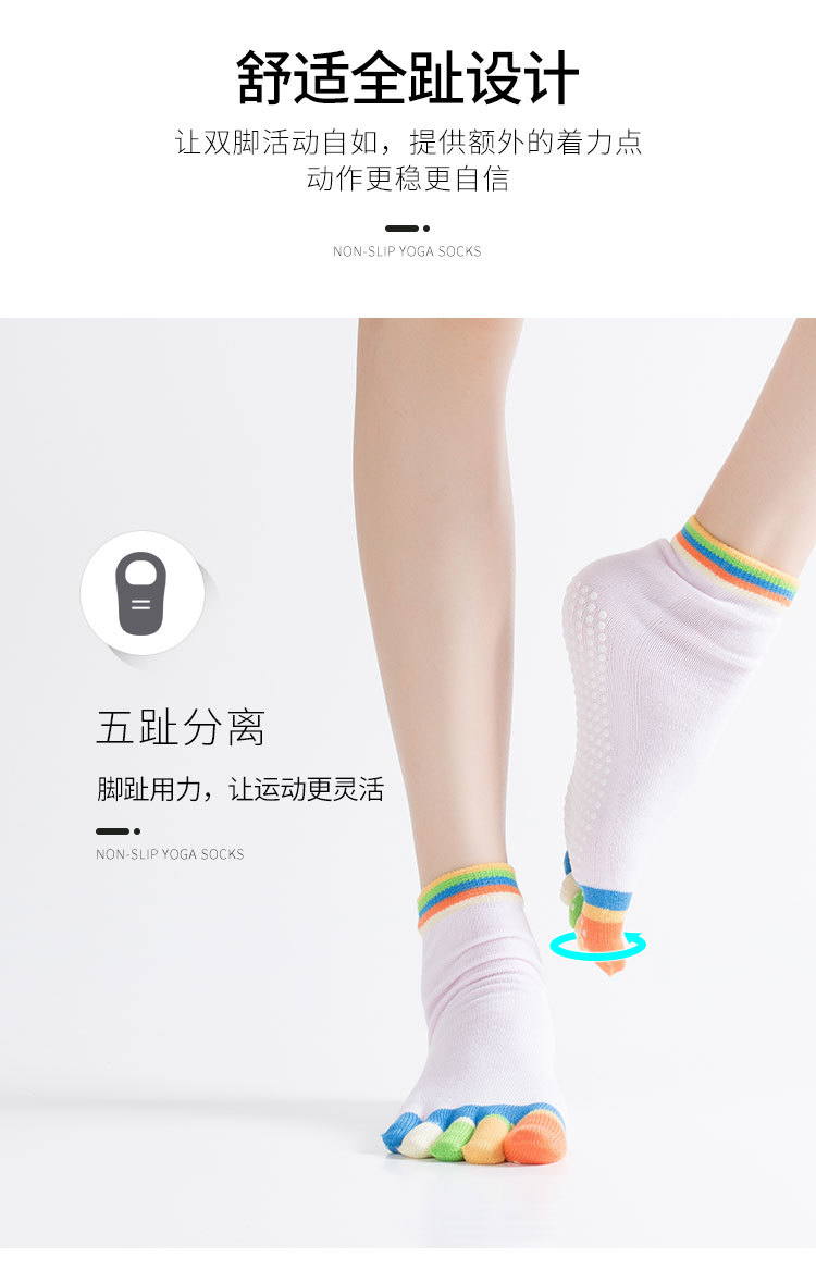 ✨ Elevate your practice with our specialized five-toe yoga grip socks, designed to give you superior traction and stability during every pose and movement.