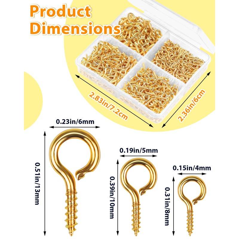 - Diverse Choices: Our Small Screw Eye Pins come in two elegant colorsgold and silveroffering three sizes: 8*4mm, 10*5mm, and 13*6mm, ensuring you find the perfect fit for your project.