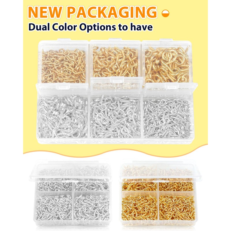 FIVEIZERO FIVEIZERO 600pcs Small Screw Pins for Jewelry Making & DIY Crafts, Mini Eyelet Screws for Art Projects & Bead Charms, Tiny Hooks & Eyes for Crafts (Gold & Silver, 3 Sizes)