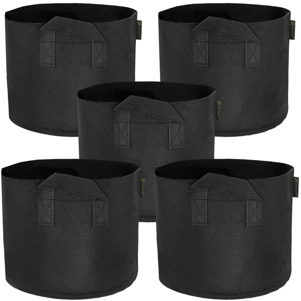 FiveSeasonStuff 5 Gallon Grow Bags Upgraded Heavy Duty Handles, 5 Pack Reusable Breathable Planters