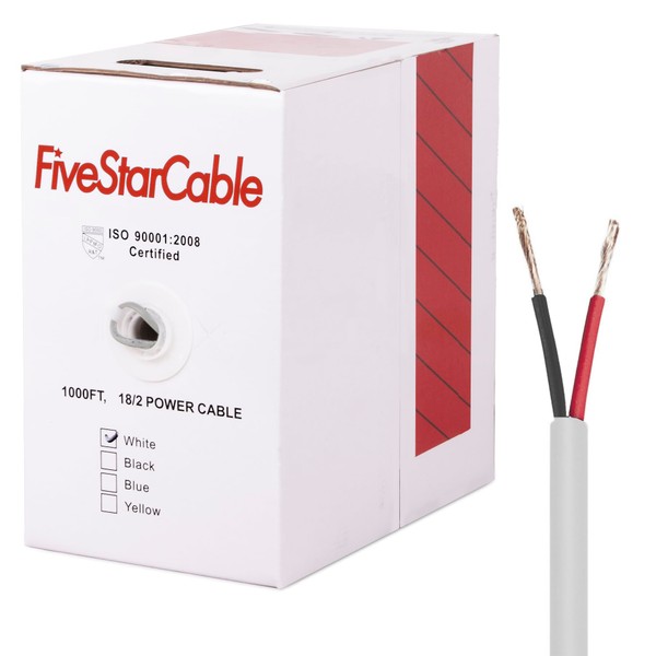 FiveStarCable 18-2 Gauge Low Voltage Stranded Cable Wire - 1000 ft, 18 AWG, PVC Jacket - for Security Systems, Alarm, Audio, Control, Intercom, and Speaker Applications (White, 18-2)