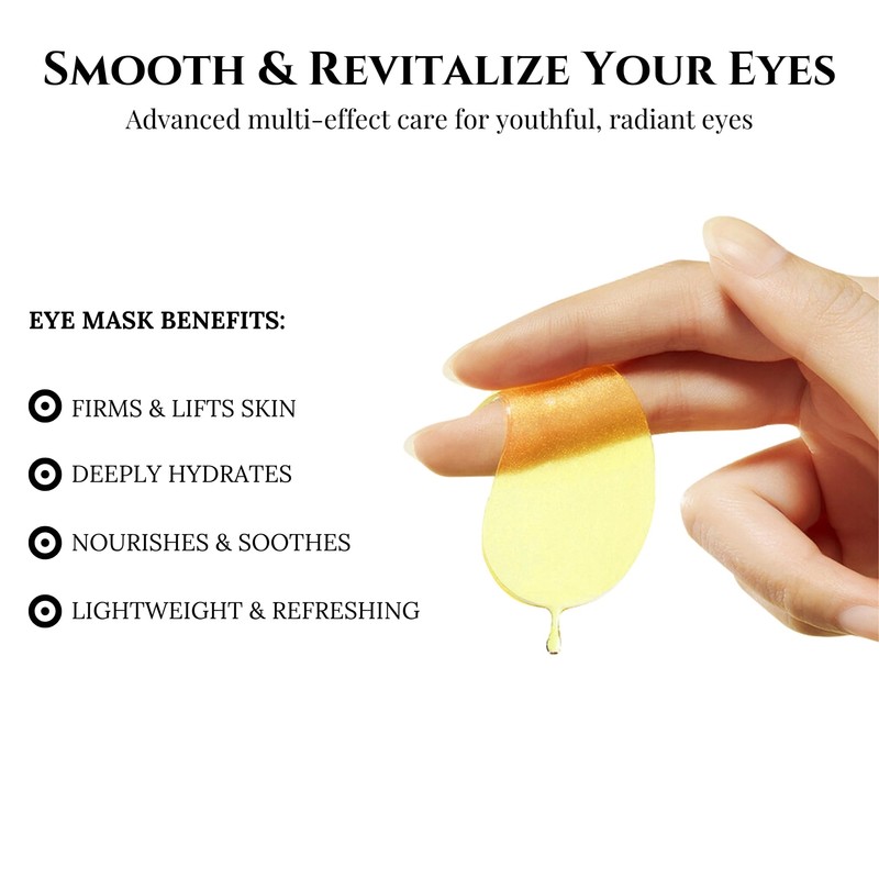 - Convenience: With 24K gold under eye mask, you don't have to worry about making time or setting aside a lofty budget. In just 20 minutes, while in your home, twice a week easily get bright eyes with these gold under eye gel patches
