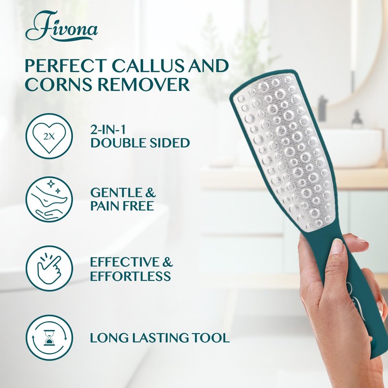 - Double Sided Foot File - With two exfoliating surfaces, our Foot File provides versatile use. The coarse side effortlessly tackles calluses and corns and removes dead skin from cracked heels with minimal effort. The fine side delicately polishes, leaving your heels noticeably smoother.