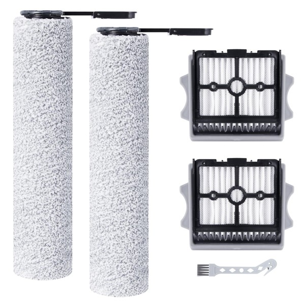 Fixbetter Roller Brush and HEPA Filter for Tineco Floor ONE Stretch S6 Cordless Wet Dry Vacuum Cleaner Replacement Parts, 2 Roller Brush + 2 HEPA Filters