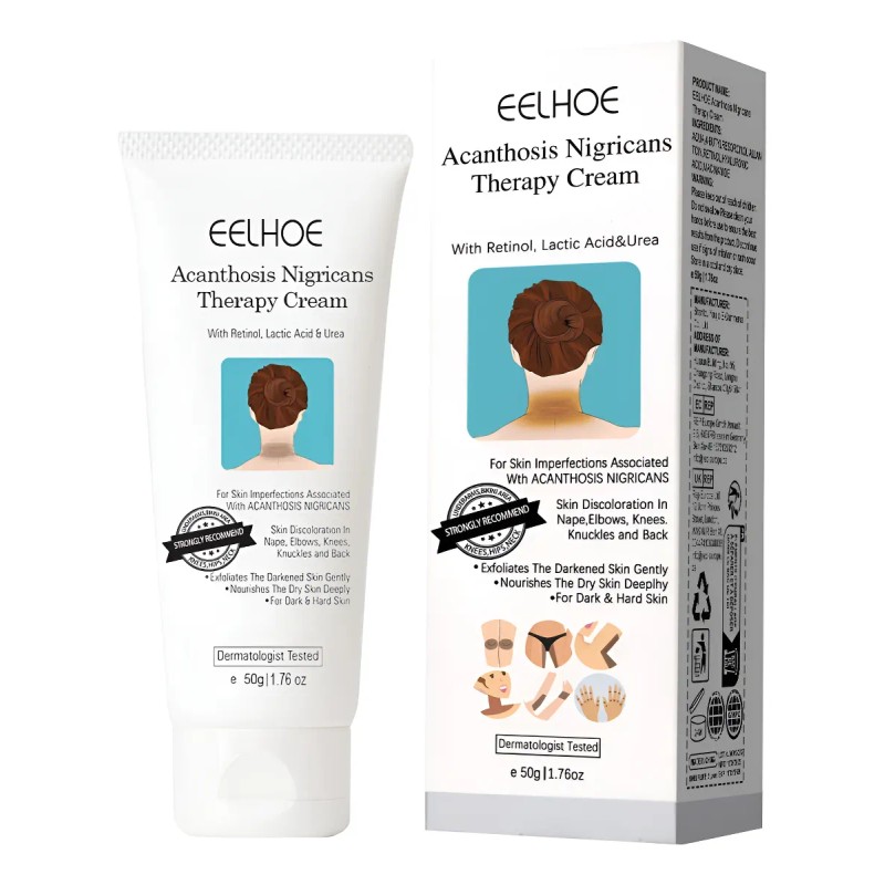 FÓRMULA PERSONALIZADA: trata la hiperpigmentación asociada a la acantosis negra, una enfermedad de la piel caracterizada por áreas oscuras y aterciopeladas de deposición en los pliegues y pliegues del cuero. Afecta a partes del cuerpo como la nuca, los tobillos, los nudillos, las axilas, los muslos y los muslos.