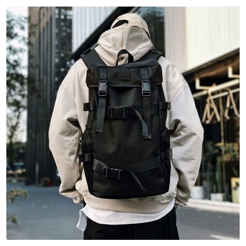 Fixed men's casual backpack buckle women's office backpack casual backpack skateboard men's backpack Black/FREE