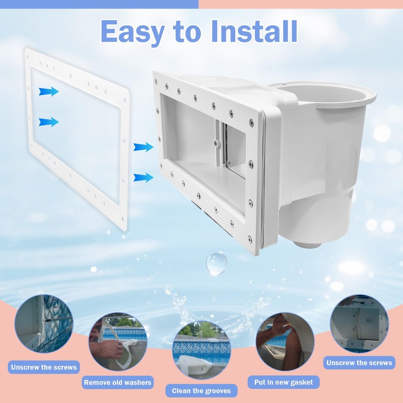 - Easy to Installation:loosen the pool skimmer screws, remove the old washers and clean the slots, place the washers exactly in the slots, align and evenly tighten the screws