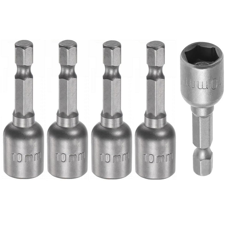 Fixinus 5 pieces 10 mm magnetic socket spanner set, 1/4 inch hex socket spanner inserts for drills, nut screwdriver and impact socket adapter, 48 mm length