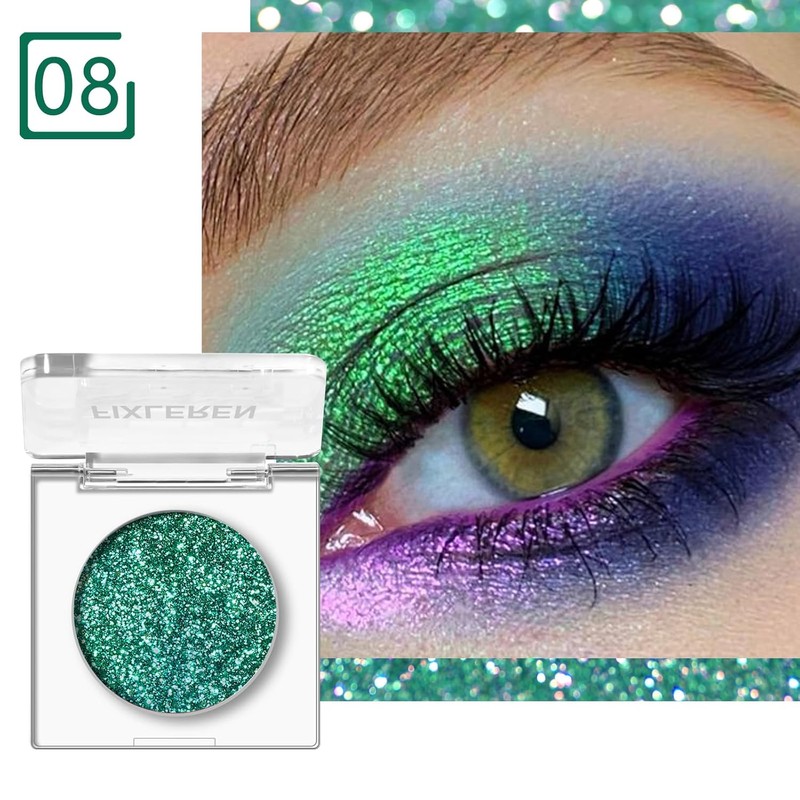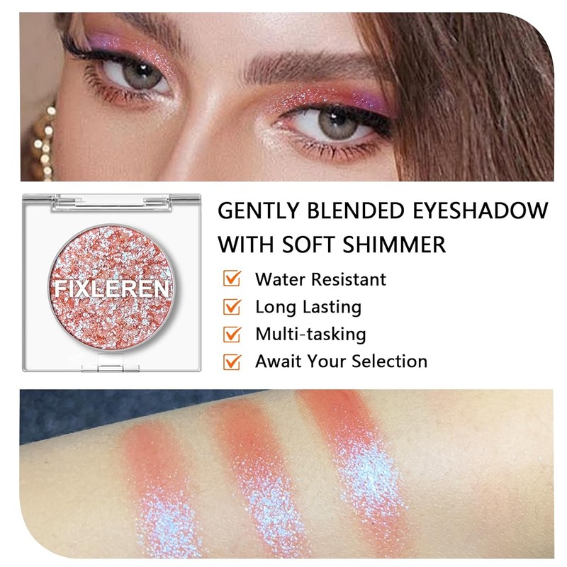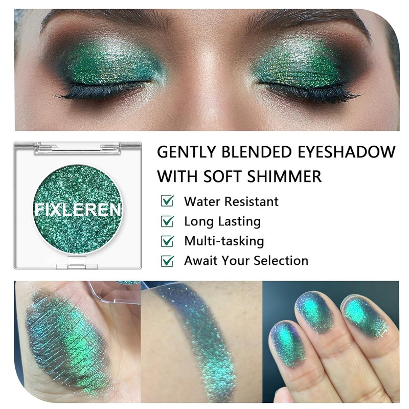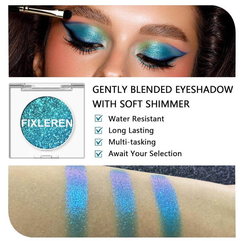 Get ready to shine with the Fixleren Chameleon Eyeshadow Palette in Blue-10. This vibrant glitter eyeshadow features a unique chameleon effect, shifting in light to create a stunning, multi-dimensional look. Designed for long-lasting wear, it stays in place throughout the day or night without fading. The soft, blendable texture allows for easy application, making it perfect for both beginners and makeup professionals. Whether you're heading to a party or preparing for a stage performance, this highlighting eyeshadow delivers a striking, eye-catching finish every time.