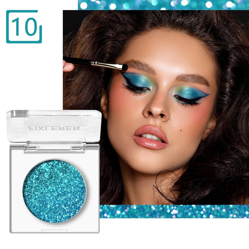Fixleren - Eyeshadow - Highlighting Eyeshadow, Glitter Chameleon Eyeshadow Makeup Palette, Long-Lasting, Soft Texture, Stage/Party Makeup (Blue-10)