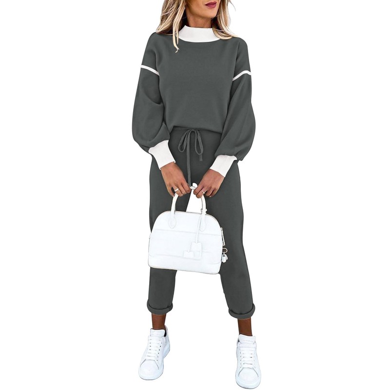 - Solid two-piece tracksuit with balloon sleeve, comfortable and stretchy to wear all day long
