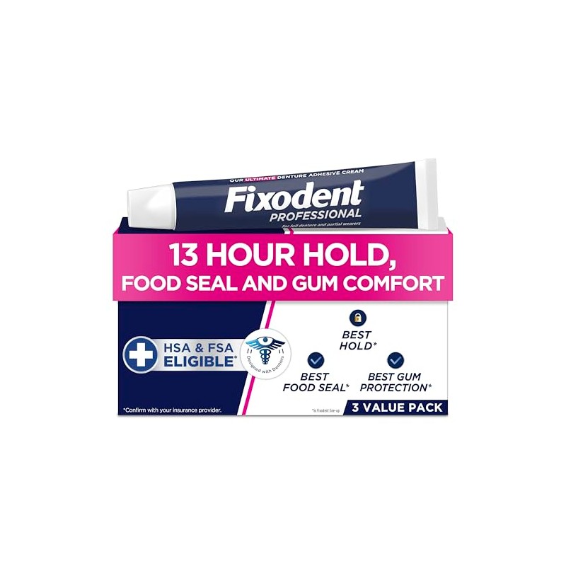 Fixodent Professional Ultimate Denture Adhesive Cream for Full and Partial Dentures, 1.8 oz, 3 Pack