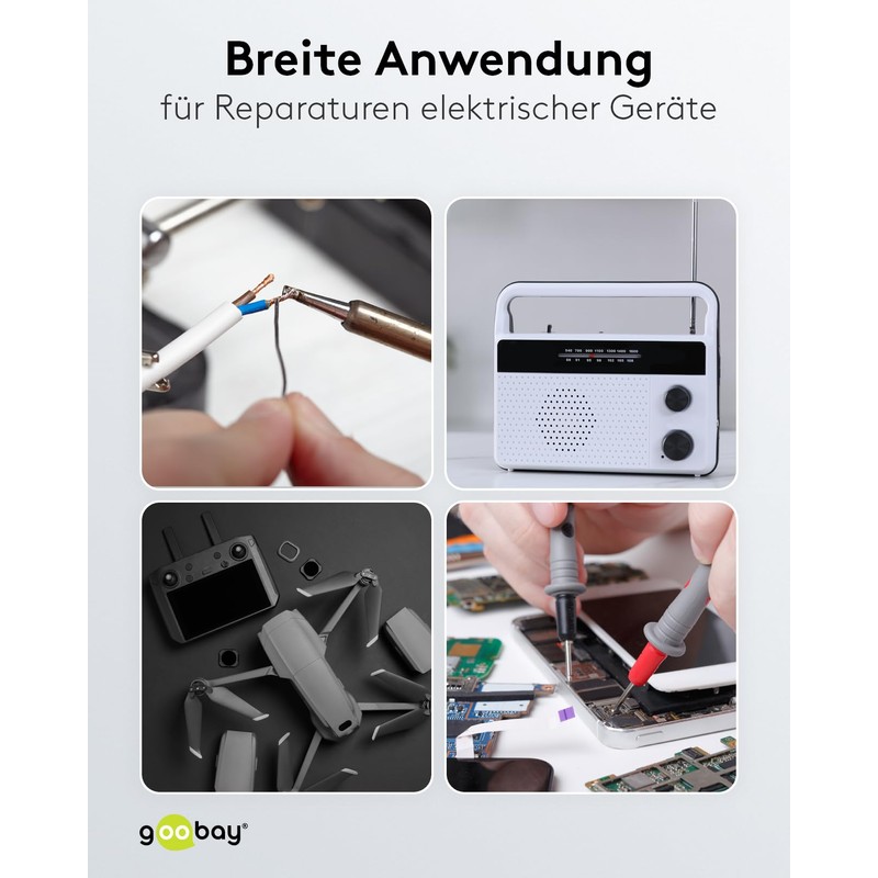 - Wide application for repairs of electrical devices such as cables / radio / TV / smartphones / boards / circuit boards / toys etc