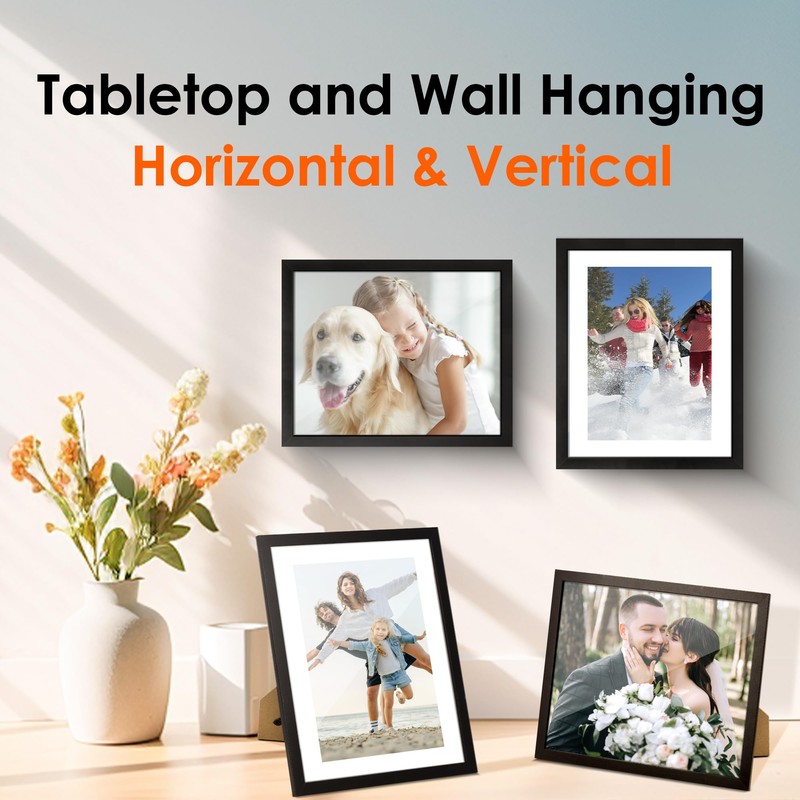 • Versatile Display: The 8x10 picture frames can showcase 8x10 photos without a mat, or with a mat, they can accommodate 5x7 photos, allowing you to layer and enhance the visual appeal of your pictures.Cherish your special memories and create a personal gallery that reflects your unique style and personality.