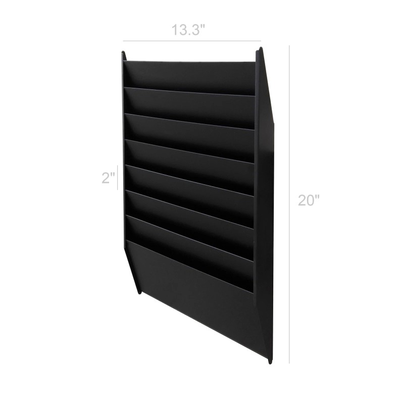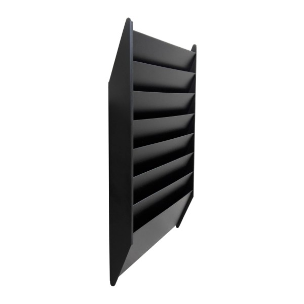 * The wall-mount design of the black holder is ideal for use in corporate offices, garages, hospitials, banks, shopping malls, government agencies, hotel lobbies, travel agencies, and anywhere large amounts of literature need to be displayed in a neat and orderl fashion.