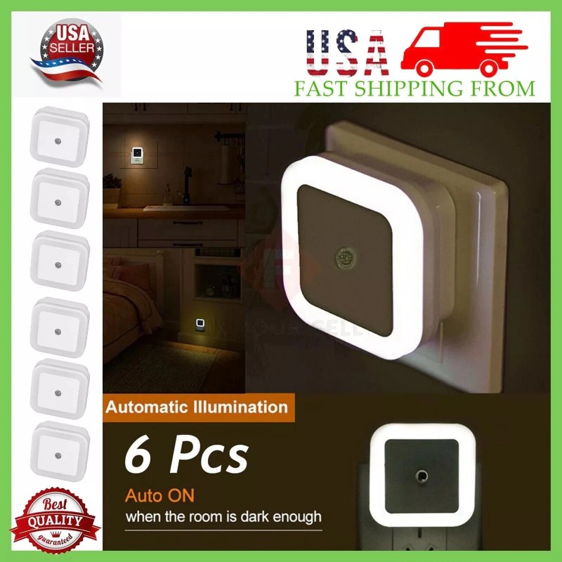 FixurCell 6-Pcs Plug-in LED Night Lights Lamp Dusk to Dawn Sensor Hallway Kitchen Bathroom