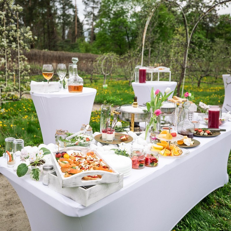 - SUITABLE FOR VARIOUS OCCASIONS - Fixwal white spandex table covers 6ft add color to your event. This tablecloth is not only suitable for family dinners, parties, graduation decorations, weddings decor, dessert tables, buffet tablecloths, but also used as trade show tablecloths, craft shows, outdoor tablecloths, banquet table covers, vendors, jewelry exhibition displays and more.