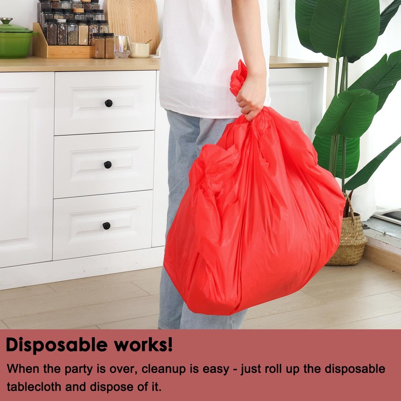 • DISPOSABLE: Disposable works! When the party is over, cleanup is easy - just roll up the disposable tablecloth and dispose of it.