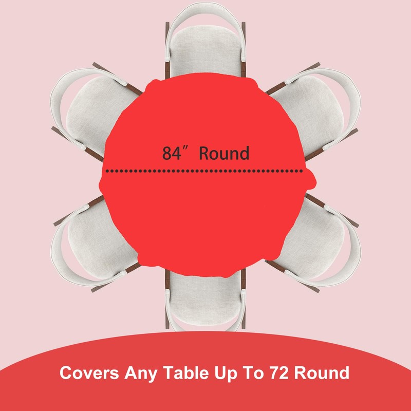 • SIZE: This 84in round plastic tablecloth for disposable use is suitable for various-sized tables, comfortably seating 8-10 people.