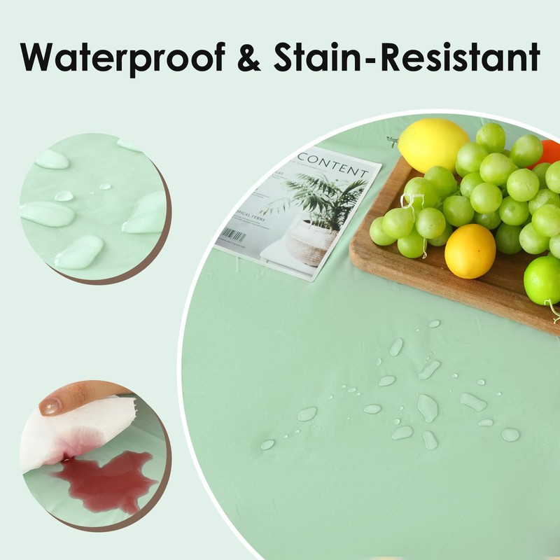 • SIZE: This 84in. Round Sage Green Plastic tablecloth will cover any table up to 8 feet.