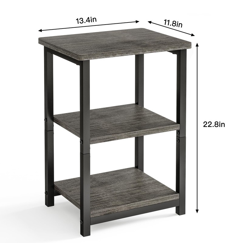 • Space-Saving: This end table measures 11.8"D x 13.4"W x 22.8"H, and serves as 3 tiers of storage - lights, alarm clock, books, and beverages, keeping everything you need close at hand.