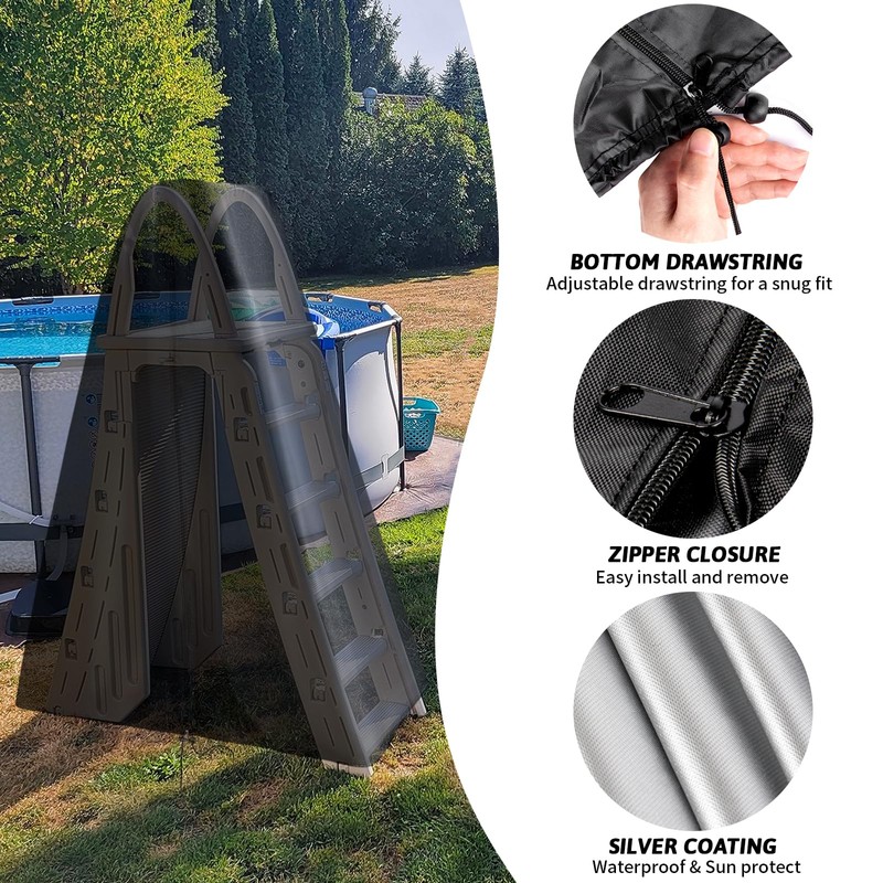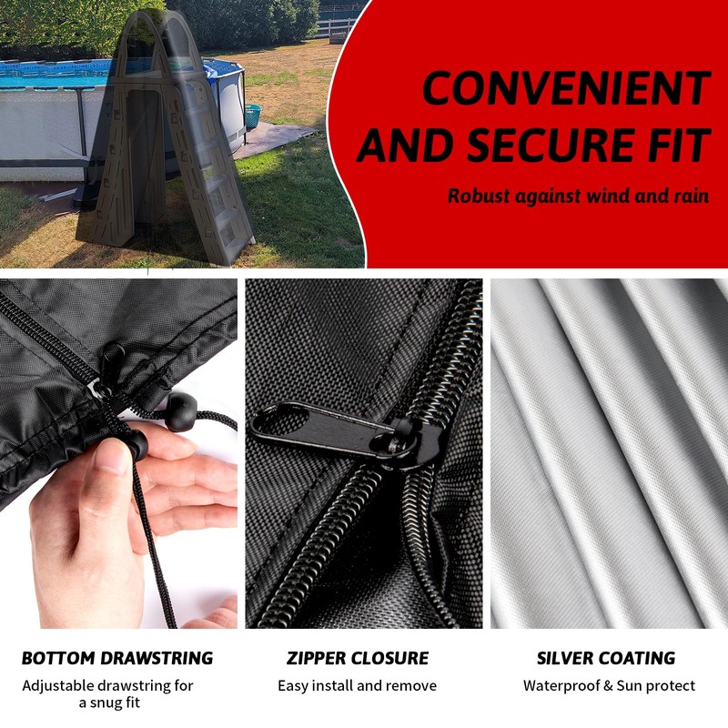 - EASY TO CLEAN - Once the cover safeguarded you pool stairs from dust,fallen leaves,or bird droppings,maintaining it is a piece of cake.Just give it a quick wipe with a damp cloth or a gentle dusting,and then place it in a well-ventilated spot then it looks as good as new,ready for next use.